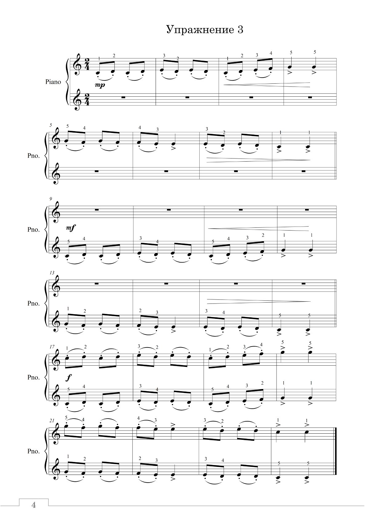 Каждое упражнение имеет постепенное усложнение, что помогает шаг за шагом совершенствовать технику и музыкальную выразительность.