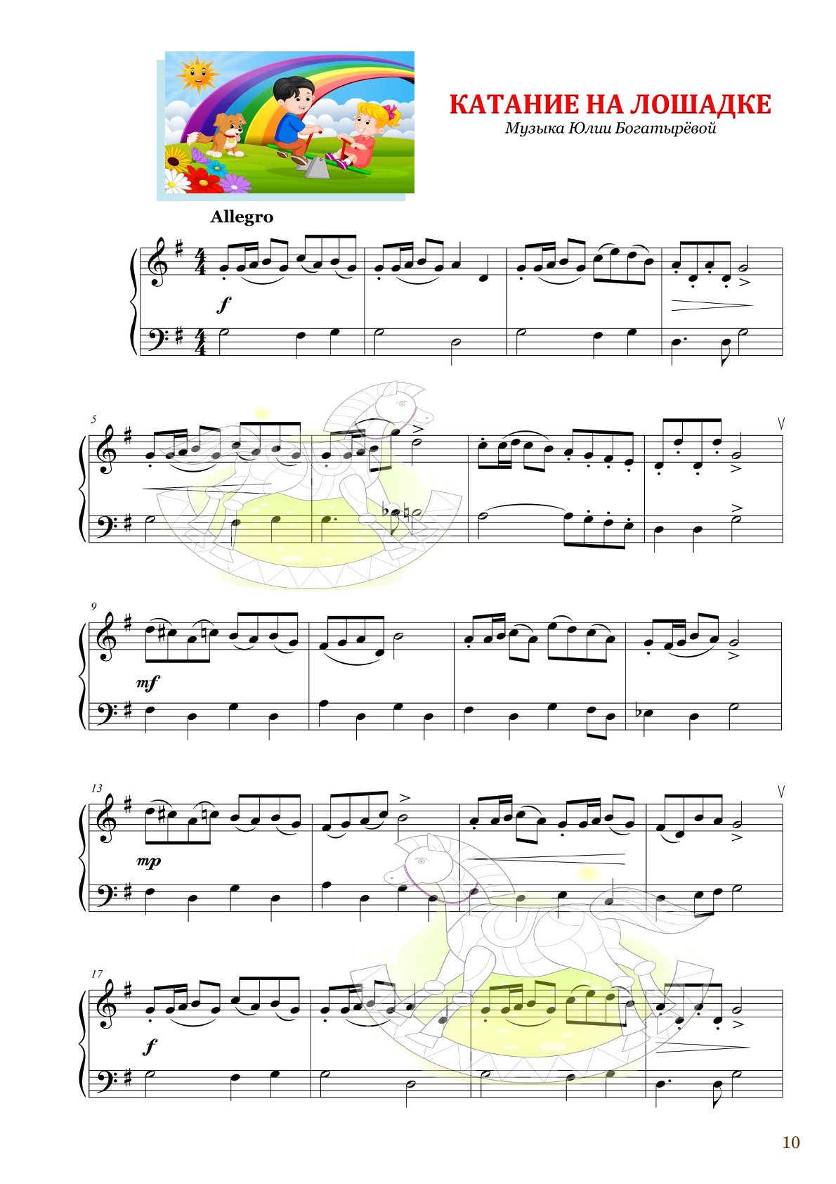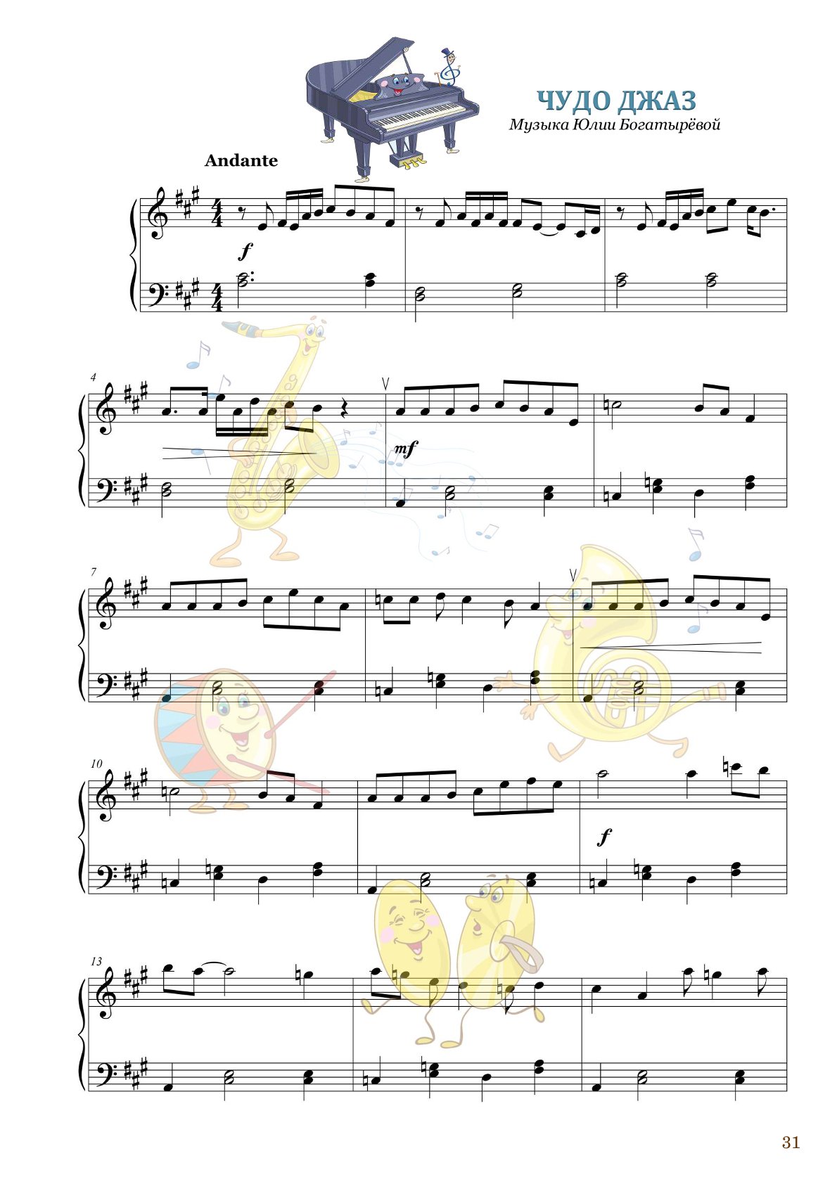 Сборник охватывает разнообразные направления — от игривых и весёлых мелодий до более серьёзных джазовых пьес. Благодаря таким произведениям, как «Катание на лошадке» 🐴🎶, «Игрушечный бал» 🎠💃 и «Кролик в шляпе» 🐇🎩, дети не только учатся, но и получают радость от музыки, развивая воображение и эмоциональный интеллект.
