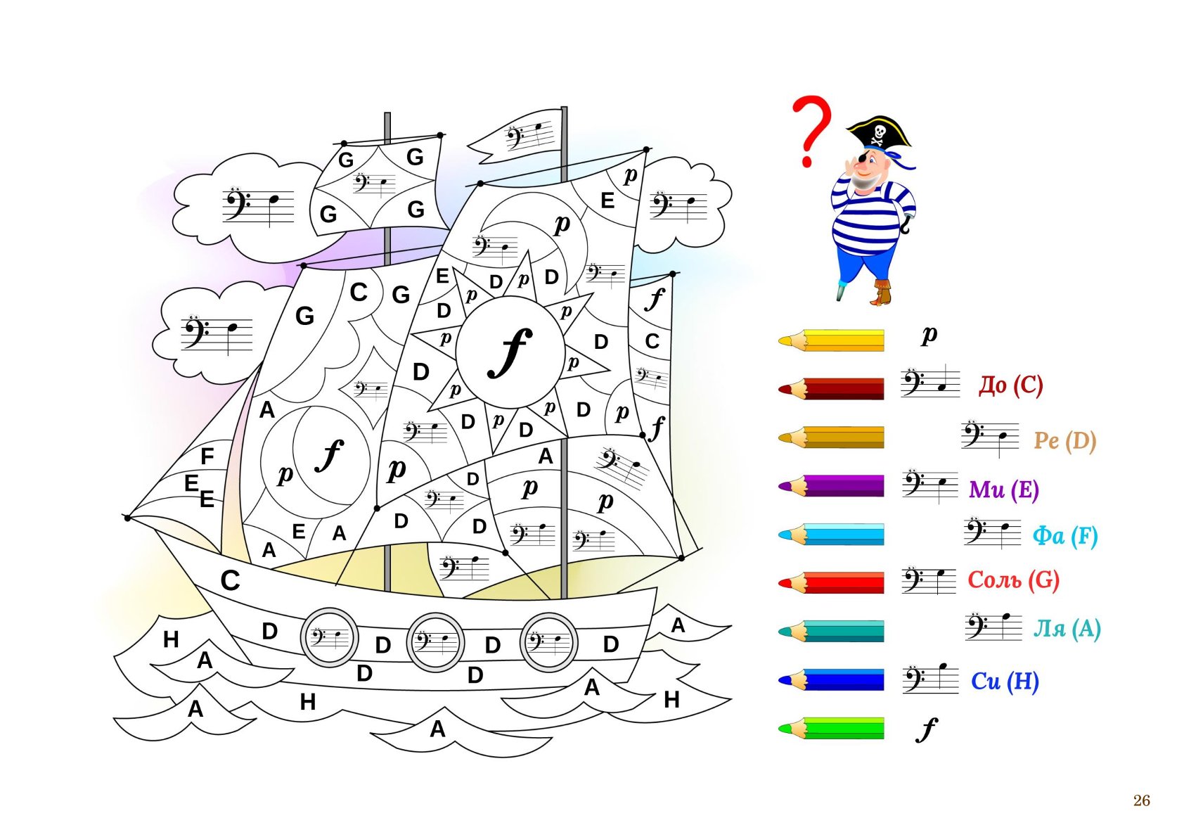 Задания в музыкальной раскраске выстроены так, чтобы материал постепенно усложнялся. Это позволяет ребёнку шаг за шагом: