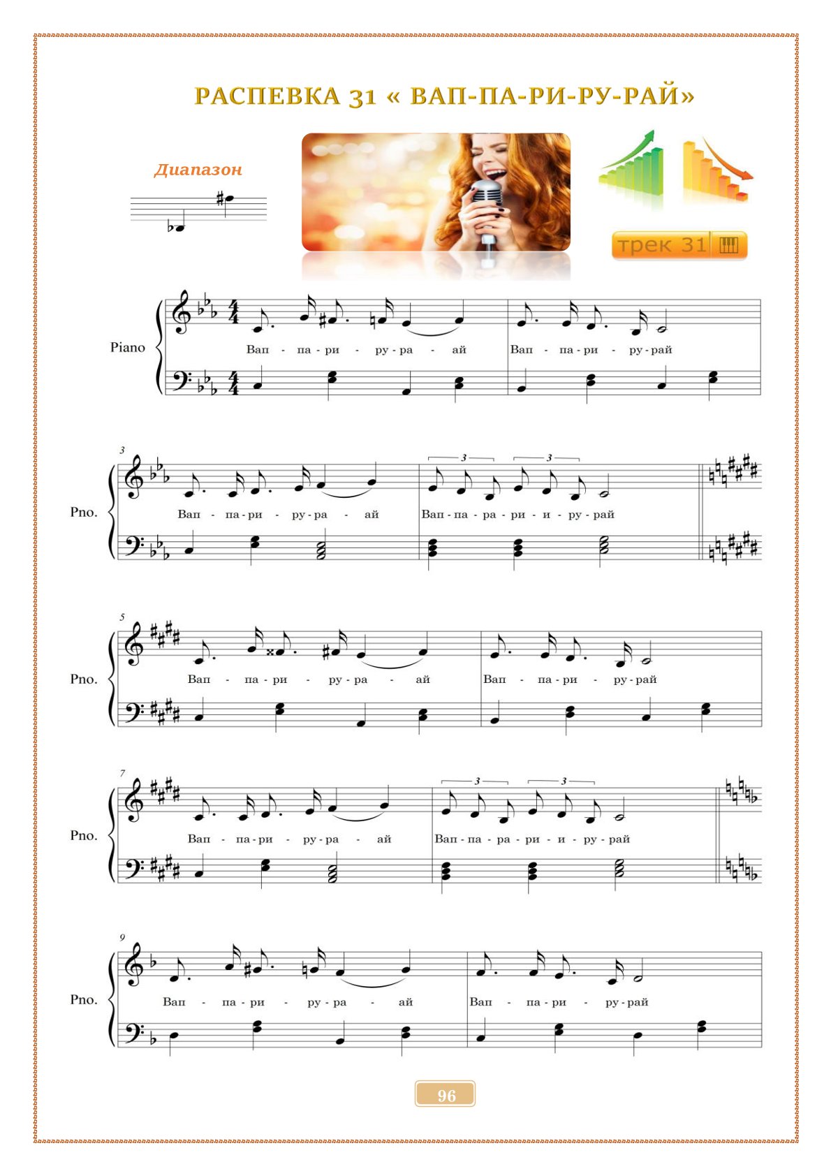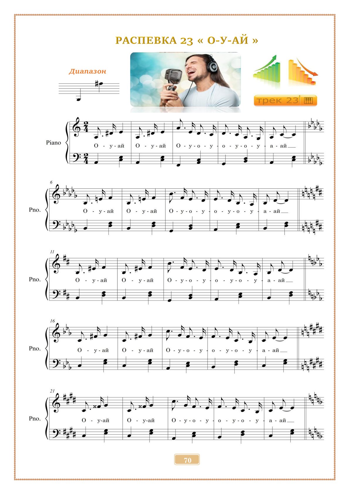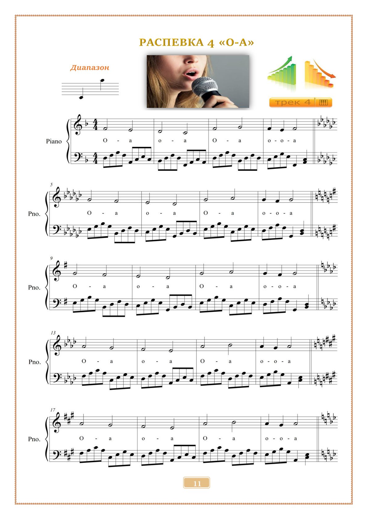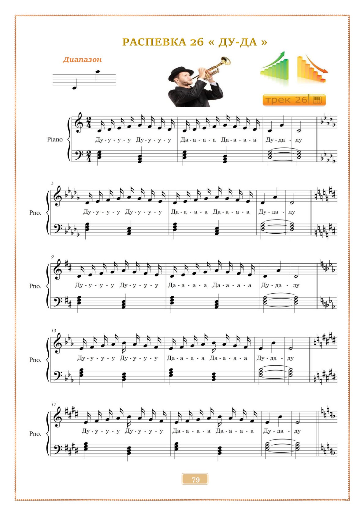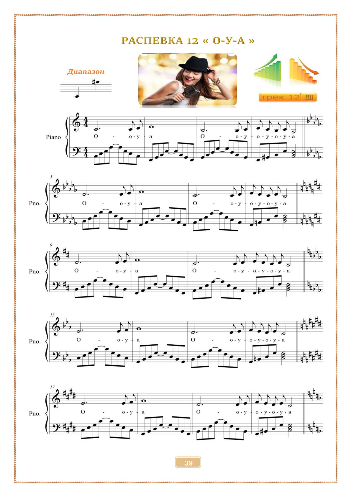 В сборнике — 40 авторских упражнений с аудиофайлами mp3, которые помогают развивать вокальный диапазон, уверенность на сцене и красивое звучание голоса.